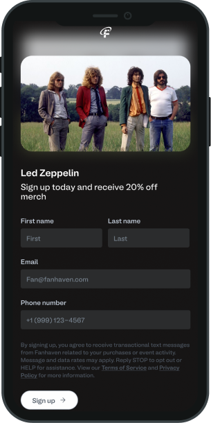 Fans sign up, enter their info, and receive a Fanpass — their identity for rewards and data capture.
