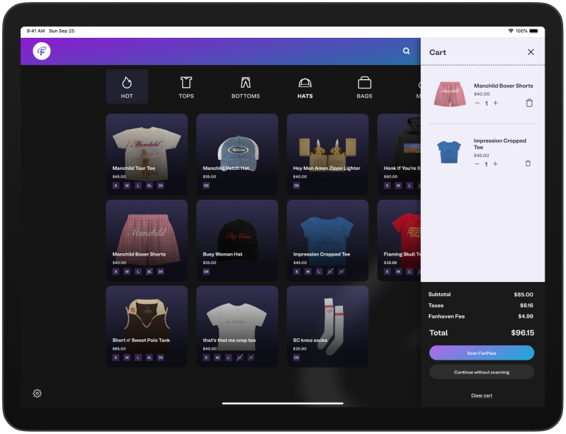 Fans scan their Fanpass at checkout. Every purchase links to their account — no friction.